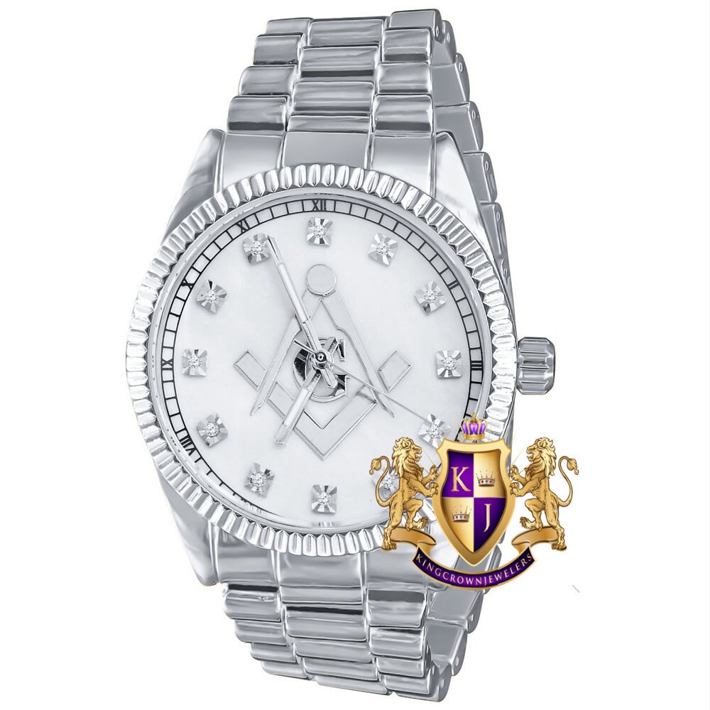 Men S Silver Tone White Dial Freemason Masonic G Compass Etsy Hong Kong